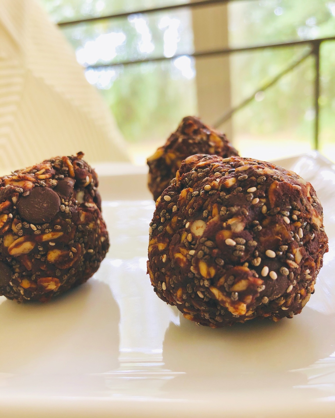~ add the cacao nibs & roll into balls. set in the fridge about 30 minutes to harden